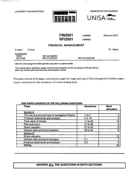 Download Link fin2601 exam answer 2012 Hardcover PDF